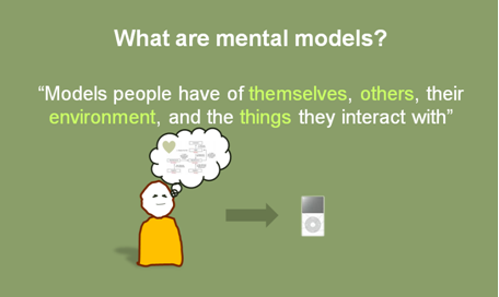 Norman em seu livro O Design do Dia-a-Dia afirma que os modelos mentais que criamos resultam de nossa tendência a formular explicações para as coisas. Esses modelos são essenciais para a compreensão de nossas experiência e também torna possível prevermos resultados a nossas ações e lidarmos com ocorrências inesperadas.