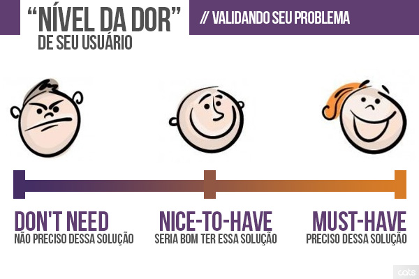 Ok, a sua ideia resolve um problema de verdade, mas é importante descobrir o quanto ela vai ser útil para as pessoas. Identificar o quanto dói a partir de conversa com os usuários, é possível perceber se sua ideia tem chance de sucesso ou se é necessário alguma mudança para que o negócio funcione. Pivotar pode ser uma saída para quem ainda não conseguiu atacar no ‘must-have’.